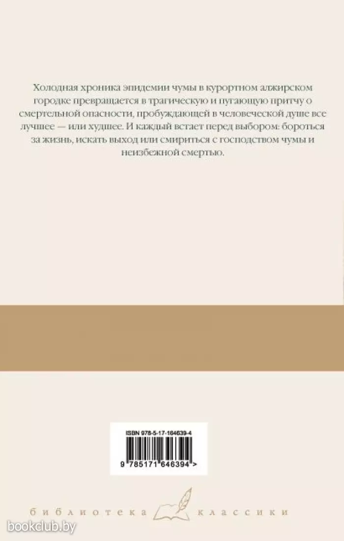 Холодная хроника эпидемии чумы в курортном алжирском городке превращается в трагическую и пугающую притчу о смертельной опасности, пробуждающей в человеческой душе все лучшее — или худшее. И каждый встает перед выбором: бороться за жизнь, искать выход или смириться с господством чумы и неизбежной смертью.