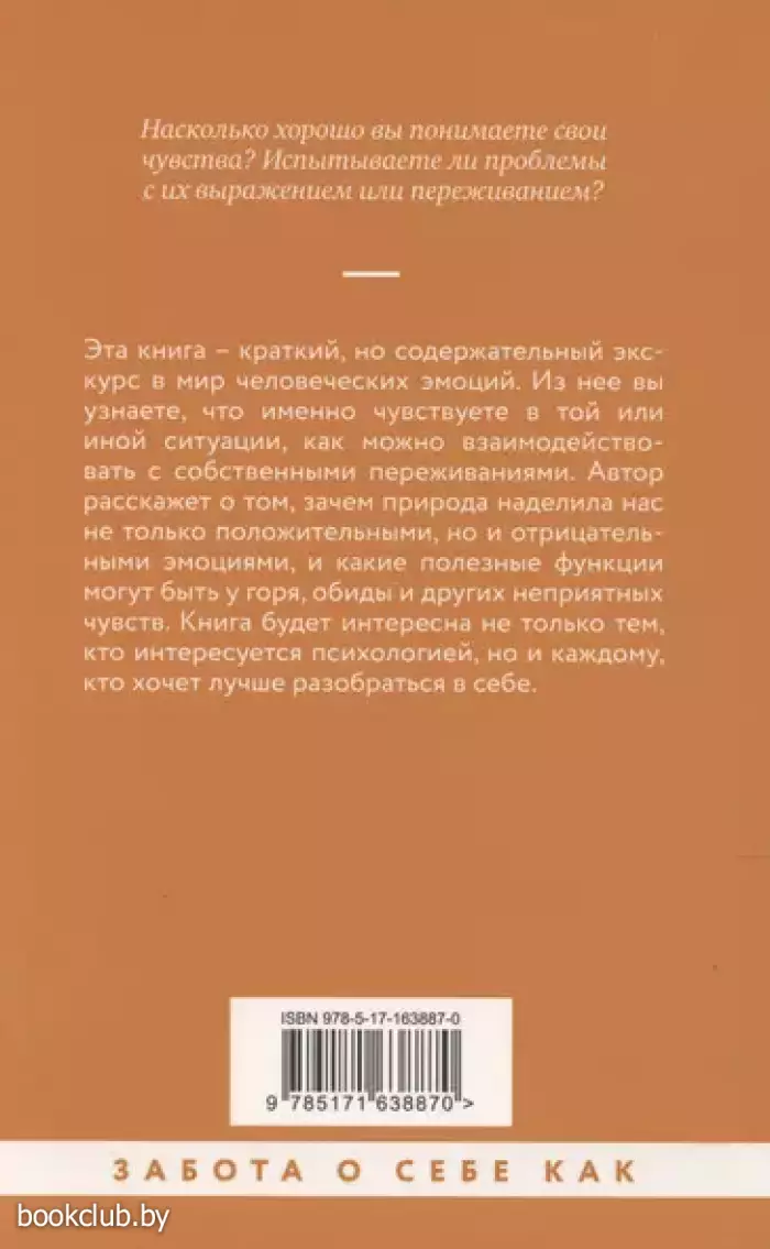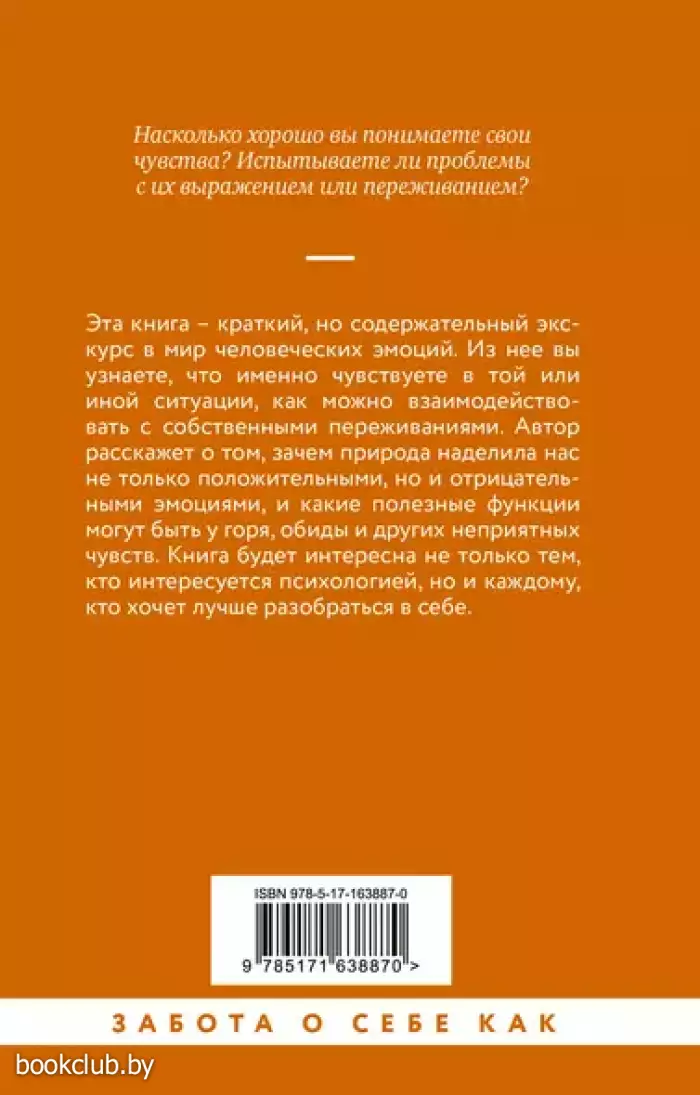 Насколько хорошо вы понимаете свои чувства? Испытываете ли проблемы с их выражением или переживанием? Эта книга – краткий, но содержательный экскурс в мир человеческих эмоций. Из нее вы узнаете, что именно чувствуете в той или иной ситуации, как можно взаимодействовать с собственными переживаниями. Автор расскажет о том, зачем природа наделила нас не только положительными, но и отрицательными эмоциями, и какие полезные функции могут быть у горя, обиды и других неприятных чувств. Книга будет интересна не только тем, кто интересуется психологией, но и каждому, кто хочет лучше разобраться в себе.