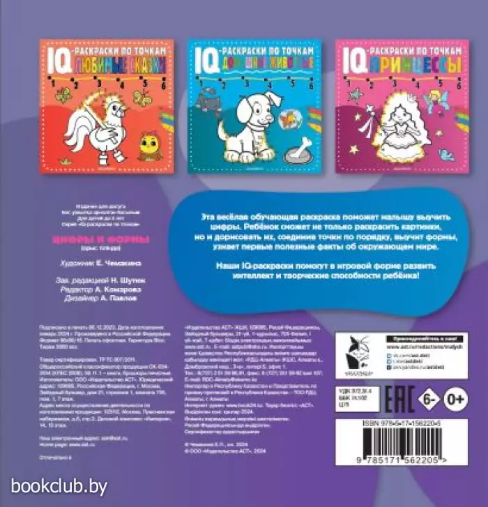 Книги издательства «АСТ» из серии «IQ-раскраски по точкам» - отличное приобретение для вас и ваших близких. Для вашего удобства при оформлении заказа по телефону назовите код товара: 198364