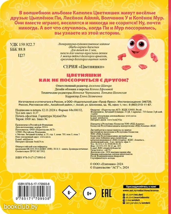 Книги издательства «АСТ» из серии «Цветняшки» станут прекрасным дополнением вашей библиотеки. Для вашего удобства при оформлении заказа по телефону назовите код товара: 413720