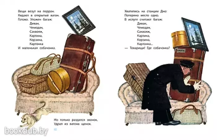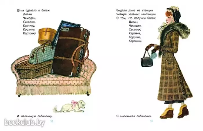 Удивительные приключения Багажа Дама сдавала в багаж: Диван, чемодан, саквояж, Картину, корзину, картонку И маленькую собачонку... Веселые стихи Маршака ритмично постукивают, как колеса на стыках, и везут, везут через всю книжку, повторяя на каждой….