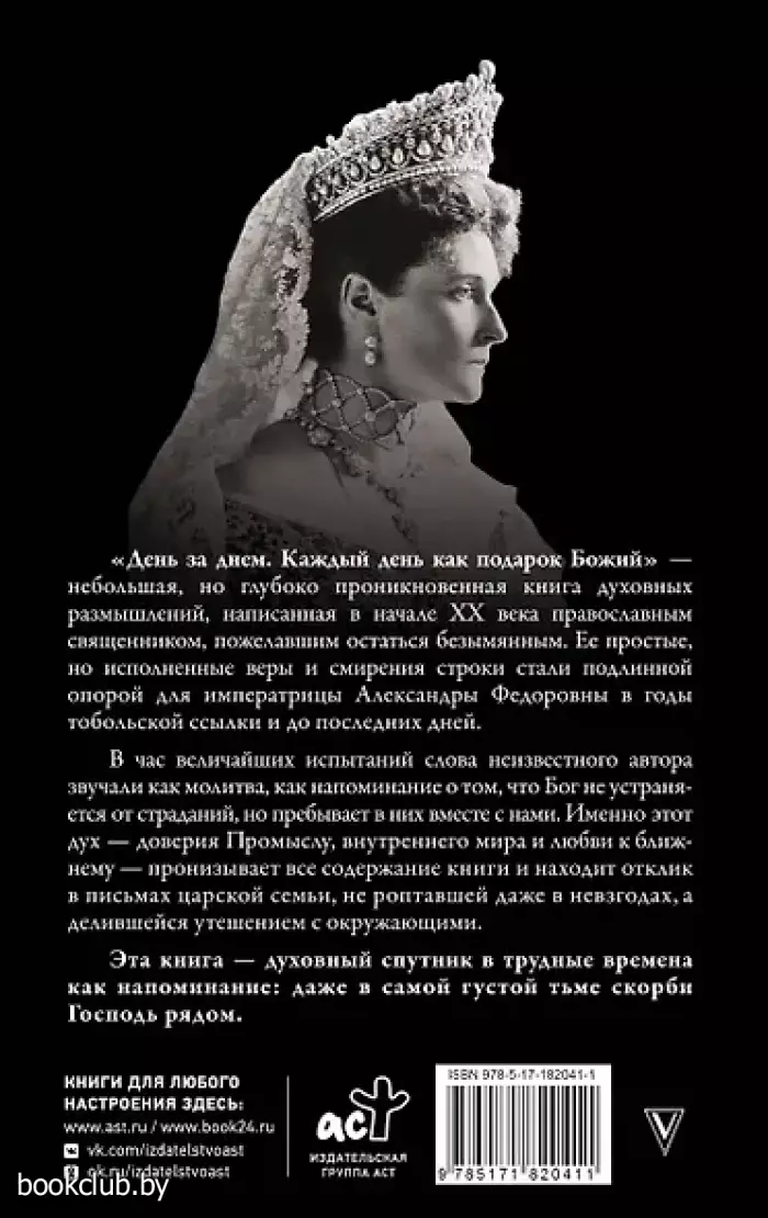 "День за днем. Каждый день как подарок Божий" — небольшая, но глубоко проникновенная книга духовных размышлений, написанная в начале XX века православным священником, пожелавшим остаться безымянным. Ее простые, но исполненные веры и смирения строки стали подлинной опорой для императрицы Александры Федоровны в годы тобольской ссылки и до последних дней.