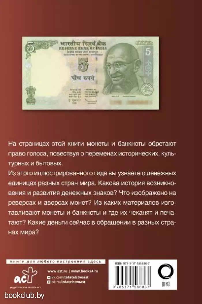 Из этого иллюстрированного гида вы узнаете о денежных единицах разных стран мира. Какова история возникновения и развития денежных знаков? Что изображено на реверсах и аверсах монет? Из каких материалов изготавливают монеты и банкноты и где их чеканят и печатают? Какие деньги сейчас в обращении в разных странах мира?