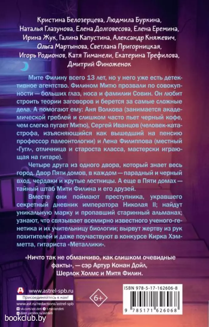 Книги издательства «АСТ» из серии «Детективное агентство Мити Филина» станут прекрасным дополнением вашей библиотеки. Для вашего удобства при оформлении заказа по телефону назовите код товара: 400207