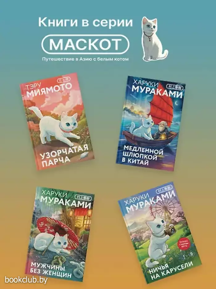 Белый кот Мичи — маскот серии. Вместе с вами он оправится в книжное путешествие по странам Азии: от чарующей Японии до загадочного Тайваня. Мичи будет поджидать вас на страницах книги. Вместе с ним вы разделите впечатления от прочитанного. На память о путешествии Мичи подарит коллекционную закладку.