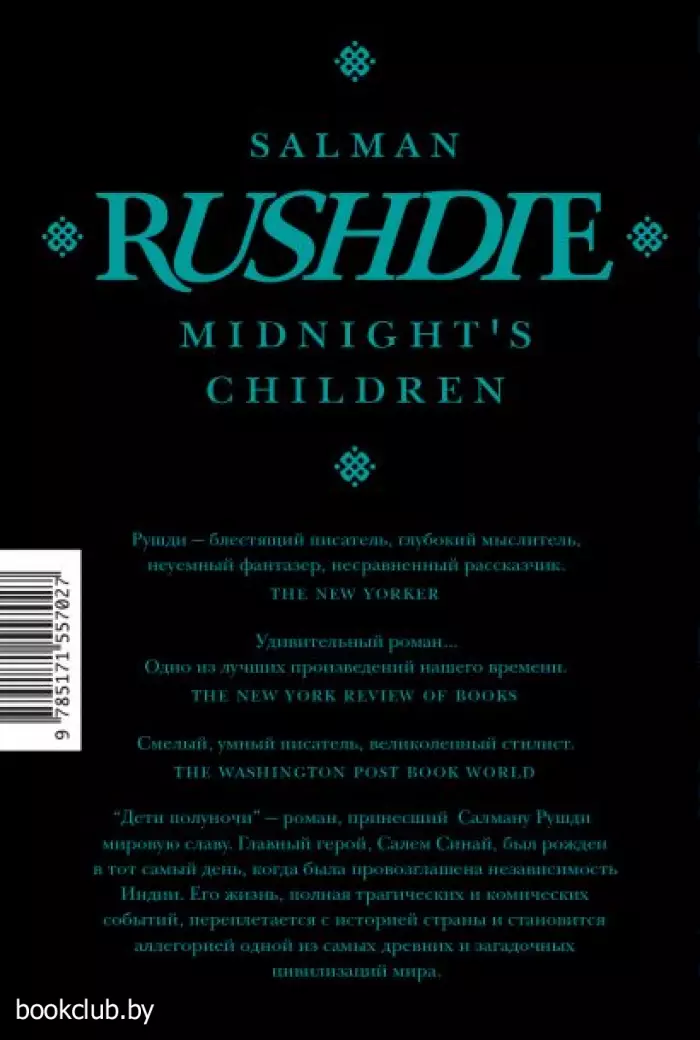 Салман Рушди – автор 16 книг, в числе которых многократно переизданные в России «Прощальный вздох мавра», «Стыд», «Ярость», «Клоун Шалимар» и др. Мировую славу Рушди принес роман «Дети полуночи» – переведенный на десятки языков, он трижды становился лауреатом премии «Букер», попал в список лучших книг века по версии газеты The Guardian и был экранизирован канадским режиссёром индийского происхождения Дипой Мехта в 2012 году.