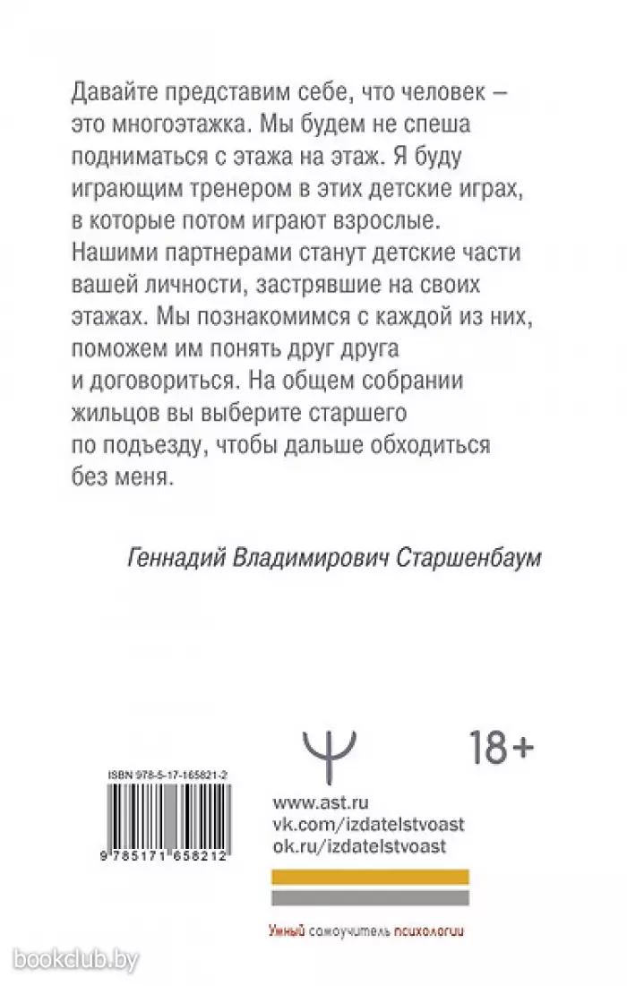 Эта книга — ваш помощник в диагностике и терапии детских травм. Геннадий Владимирович Старшенбаум рассматривает их источники и причины, анализирует взаимоотношения родителей и детей, опираясь на реальные случаи из своей психотерапевтической практики. Текст оснащен полезным инструментарием — тестами, упражнениями и тренингами, которые помогут диагностировать детские травмы и проработать их.