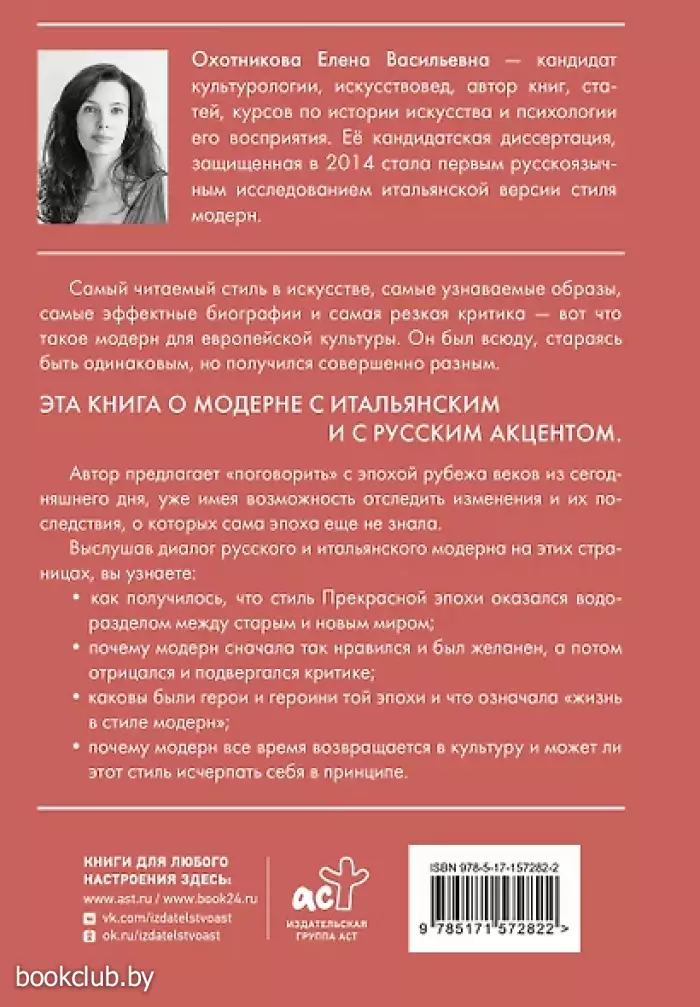 Модерн — короткий, но яркий период в истории искусств. Безошибочно узнаваемый, ровесник века, стиль Прекрасной эпохи. Модерн был всюду и его интерпретация раскрывала национальные особенности принявшей его культуры. Невероятно популярный среди современников и неистово осуждаемый следующим поколением. Стиль, до сих пор вызывающий споры о том, что это было — всеобщее увлечение линией и праздником жизни или все-таки фундамент культуры двадцатого века? В этой книге вместе с читателем автор предлагает вступить в диалог с этой эпохой, выбрав главными героями русскую и итальянскую версию стиля модерн. Подобрать код, открывающий дверь в мир прошлого, чтобы лучше понять настоящее.