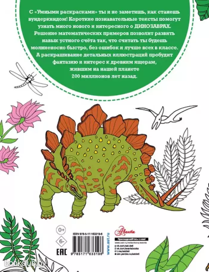 Эта книга – не просто раскраска, а самая настоящая маленькая энциклопедия, которая расскажет о древних ящерах, населявших нашу планету миллионы лет назад. Какими были знаменитые динозавры? Когда жили? Какими способностями обладали и как учёные восстанавливали их облик? Обо всём этом вы узнаете из книги! А попутно потренируете навык устного счёта, ведь на каждом развороте около раскраски есть математические примеры, которые помогут выбрать нужный цвет. Для младшего школьного возраста.