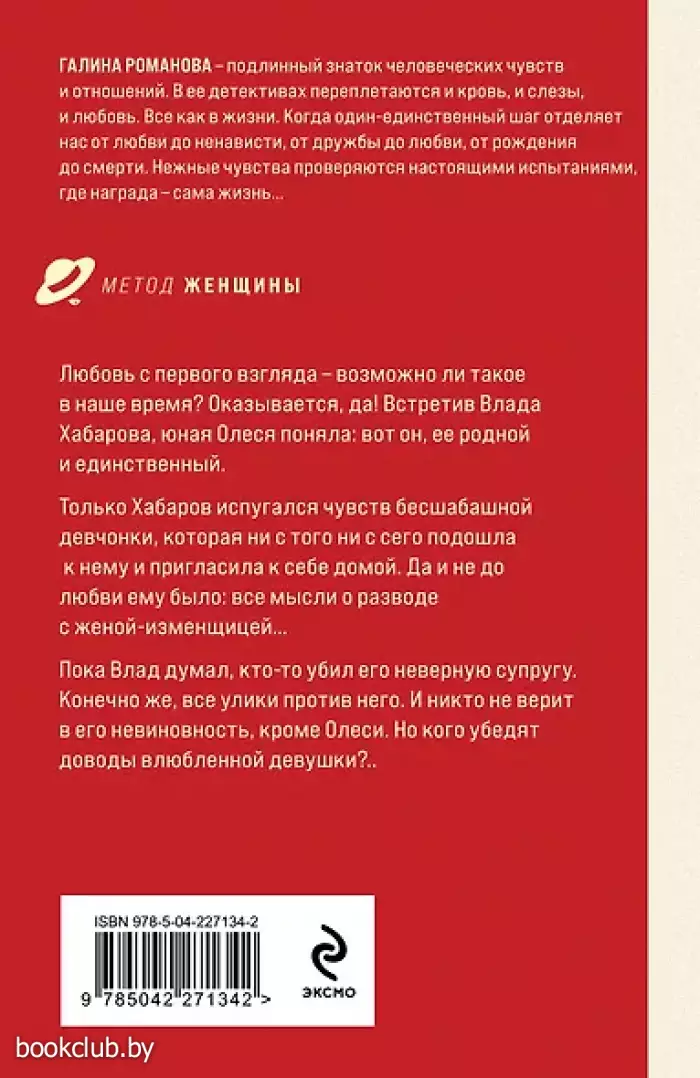 Книга от издательства «ЭКСМО», входящая в серию «Детективы Галины Романовой. Метод Женщины. Новое оформление», принесет массу положительных впечатлений от прочтения и займет достойное место в вашей библиотеке. Для вашего удобства при оформлении заказа по телефону назовите код товара: 416002