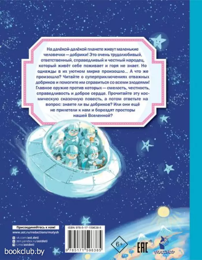 "Добрики спасают мир" – новая сказочная повесть Александра Киселёва, победителя конкурса имени Чуковского в номинации "Лучшее произведение в прозе для детей 8-12 лет". Александр Киселёв – кандидат педагогических наук, автор школьных учебников по литературе, автор познавательных и художественных книг. Его новые герои, добрики, – маленькие человечки с другой планеты, но с такими же проблемами, как и в нашем мире. Им самим приходится бороться с несправедливостью, жадностью, завистью и злом. Но, как и на нашей планете, всё плохое бессильно перед добрым сердцем и чистой, искренней душой! Книги издательства «АСТ» из серии «Лучшие сказочные повести» - отличное приобретение для вас и ваших близких. Для вашего удобства при оформлении заказа по телефону назовите код товара: 400853