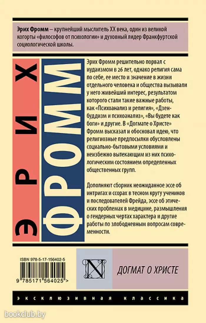 Эрих Фромм решительно порвал с иудаизмом в 26 лет, однако религия сама по себе, ее место и значение в жизни отдельного человека и общества вызывали у него живейший интерес, результатом которого стали такие важные работы, как "Психоанализ и религия", "Дзен-буддизм и психоанализ", "Вы будете как боги" и другие. В "Догмате о Христе" Фромм высказал и обосновал идею, что религиозные предпосылки обусловлены социально-бытовыми условиями и неизбежно вытекающим из них психологическим состоянием определенных общественных групп.