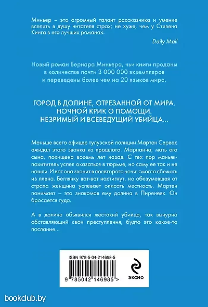 Меньше всего офицер тулузской полиции Мартен Сервас ожидал этого звонка из прошлого. Марианна, мать его сына, похищена восемь лет назад. С тех пор маньяк-похититель успел оказаться в тюрьме, но саму ее так и не нашли. И вот она звонит в полвторого ночи: смогла сбежать из плена. Беглянку вот-вот настигнут, но обезумевшая от страха женщина успевает описать местность. Мартен понимает — это знакомая ему долина в Пиренеях. Он бросается туда.