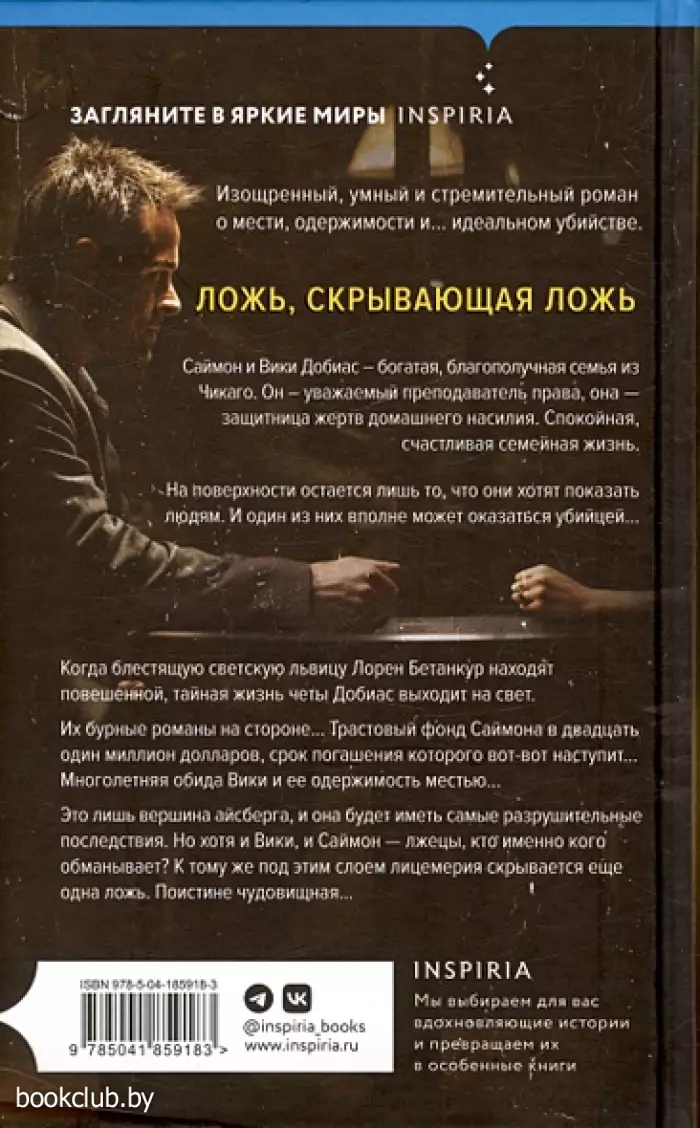 Когда блестящую светскую львицу Лорен Бетанкур находят повешенной, тайная жизнь четы Добиас выходит на свет. Их бурные романы на стороне… Трастовый фонд Саймона в двадцать один миллион долларов, срок погашения которого вот-вот наступит… Многолетняя обида Вики и ее одержимость местью… Это лишь вершина айсберга, и она будет иметь самые разрушительные последствия. Но хотя и Вики, и Саймон — лжецы, кто именно кого обманывает? К тому же, под этим слоем лицемерия скрывается еще одна ложь. Поистине чудовищная…