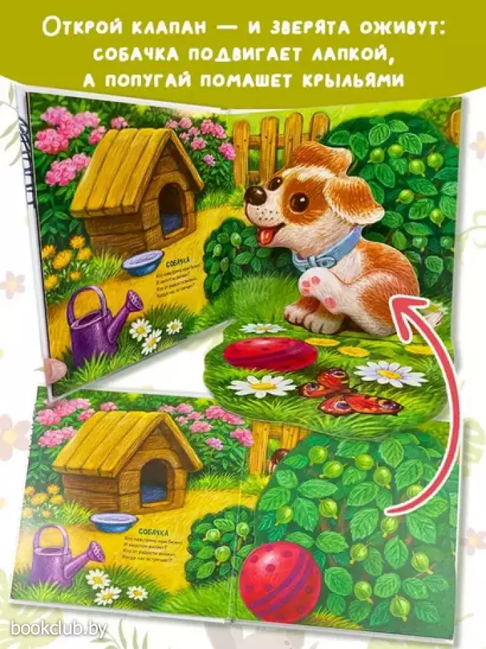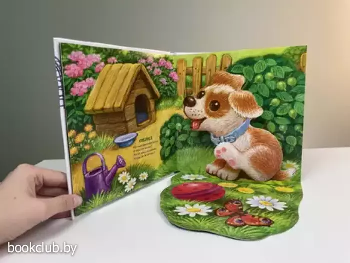 Эта удивительная книга через игру с интерактивными элементами книги — иллюстрированными поп-апами на каждом развороте — познакомит малыша с первыми домашними животными.