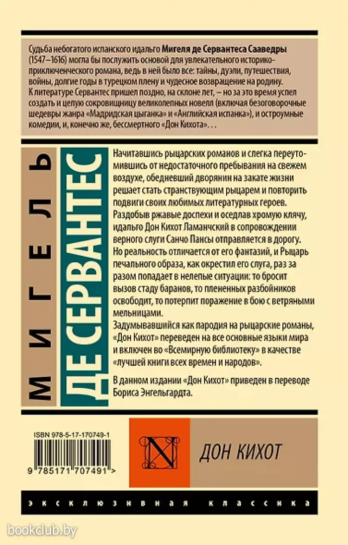 Задумывавшийся как пародия на рыцарские романы, "Дон Кихот" переведен на все основные языки мира и включен во "Всемирную библиотеку" в качестве "лучшей книги всех времен и народов".