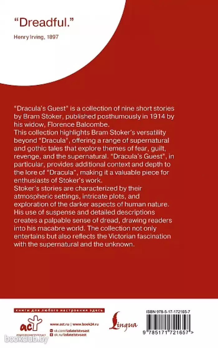 Эта книга станет настоящим подарком для любителей классического ужаса и ценителей творчества Стокера, а также позволит насладиться мрачными рассказами автора в оригинале без адаптации.