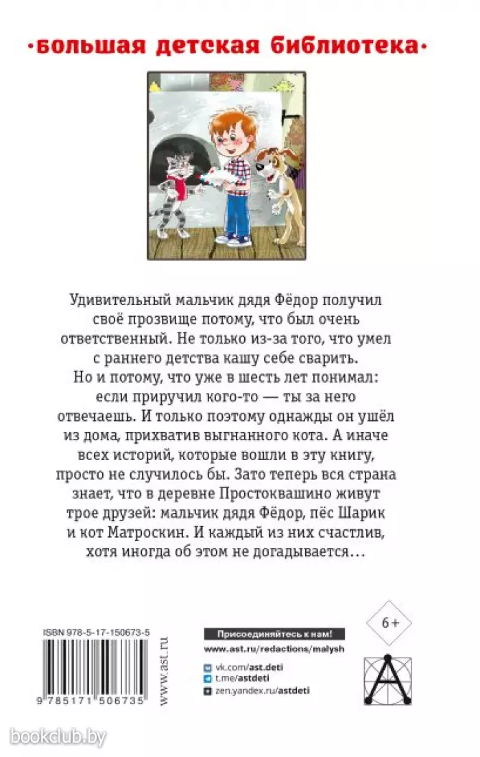 отвечаешь. И только поэтому однажды он ушёл из дома, прихватив выгнанного кота. А иначе всех историй, которые вошли в эту книгу, просто не случилось бы. Зато теперь вся страна знает, что в деревне Простоквашино живут трое друзей: мальчик дядя Фёдор, пёс Шарик
