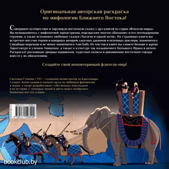 • Изображения для раскрашивания — полосные и разворотные иллюстрации высокой детализации — дополнены информацией о каждом легендарном персонаже Ближнего Востока.