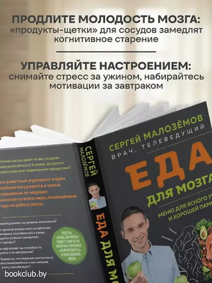 В новой книге известный журналист и врач Сергей Малозёмов погружается в самые свежие исследования от ведущих нейрофизиологов со всего мира, посвящённые влиянию еды на работу мозга.