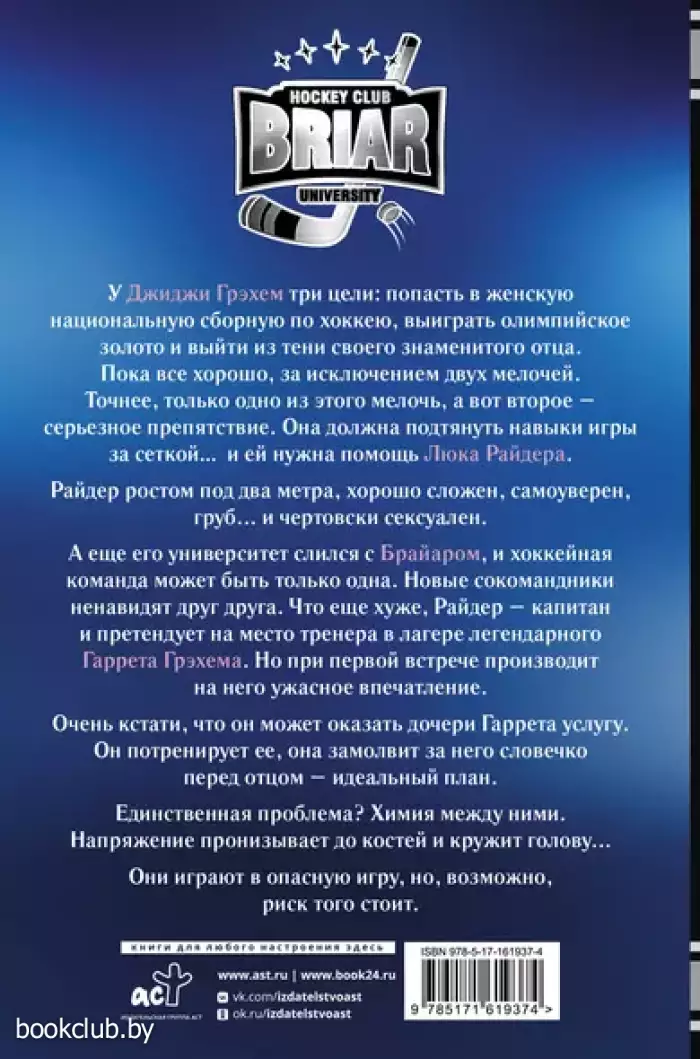 У Джиджи Грэхем три цели: попасть в женскую национальную сборную по хоккею, выиграть олимпийское золото и выйти из тени своего знаменитого отца. Пока все хорошо, за исключением двух мелочей. Точнее, только одно из этого мелочь, а вот второе – серьезное препятствие. Она должна подтянуть навыки игры за сеткой… и ей нужна помощь Люка Райдера. Райдер ростом под два метра, хорошо сложен, самоуверен, груб... и чертовски сексуален. А еще его университет слился с Брайаром, и хоккейная команда может быть только одна. Новые сокомандники ненавидят друг друга. Что еще хуже, Райдер – капитан и претендует на место тренера в лагере легендарного Гаррета Грэхема. Но при первой встрече производит на него ужасное впечатление. Очень кстати, что дочери Гаррета нужна помощь. Он потренирует ее, она замолвит за него словечко перед отцом – идеальный план. Единственная проблема? Химия между ними. Напряжение пронизывает до костей и кружит голову... Они играют в опасную игру, но, возможно, риск того стоит.