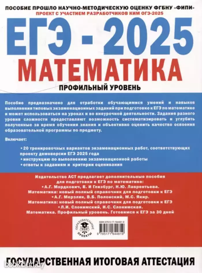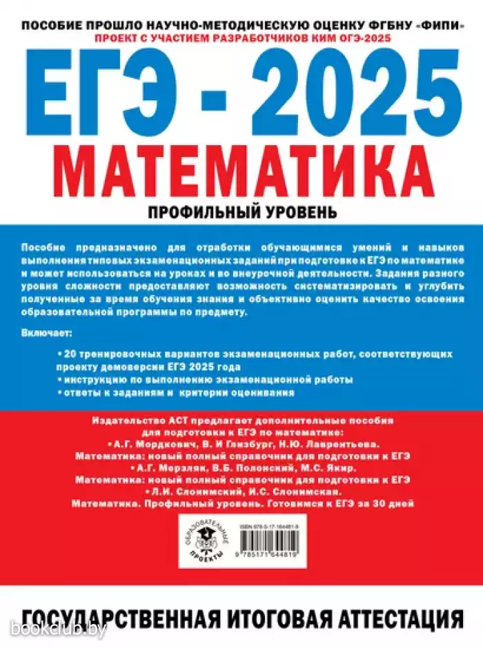 ЕГЭ-2025. Математика. Профильный уровень. 20 тренировочных вариантов экзаменационных работ для подготовки к ЕГЭ