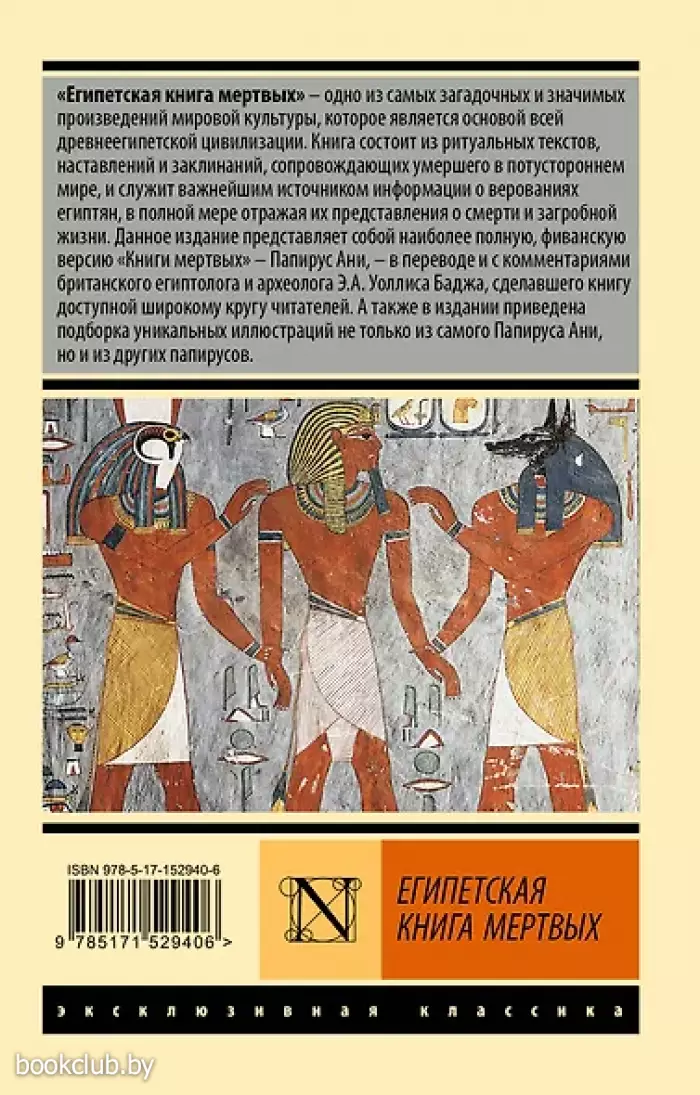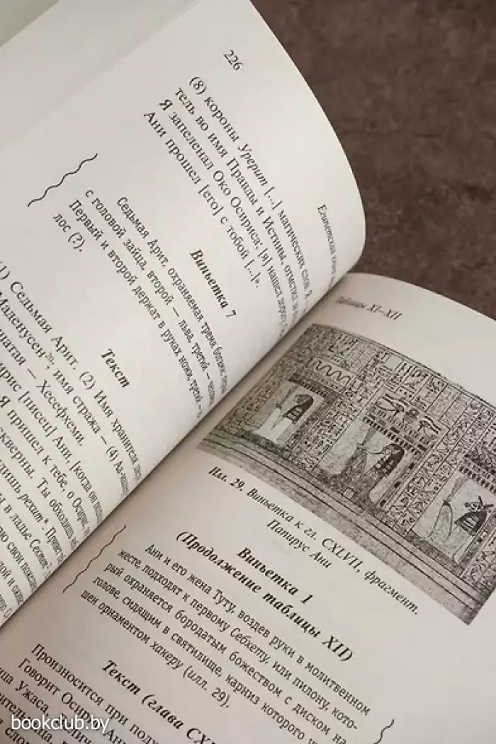 — Издание сопровождается комментариями британского египтолога Э.А. Уоллиса Баджа, который и сделал «Книгу мертвых» доступным для широкого круга читателей.