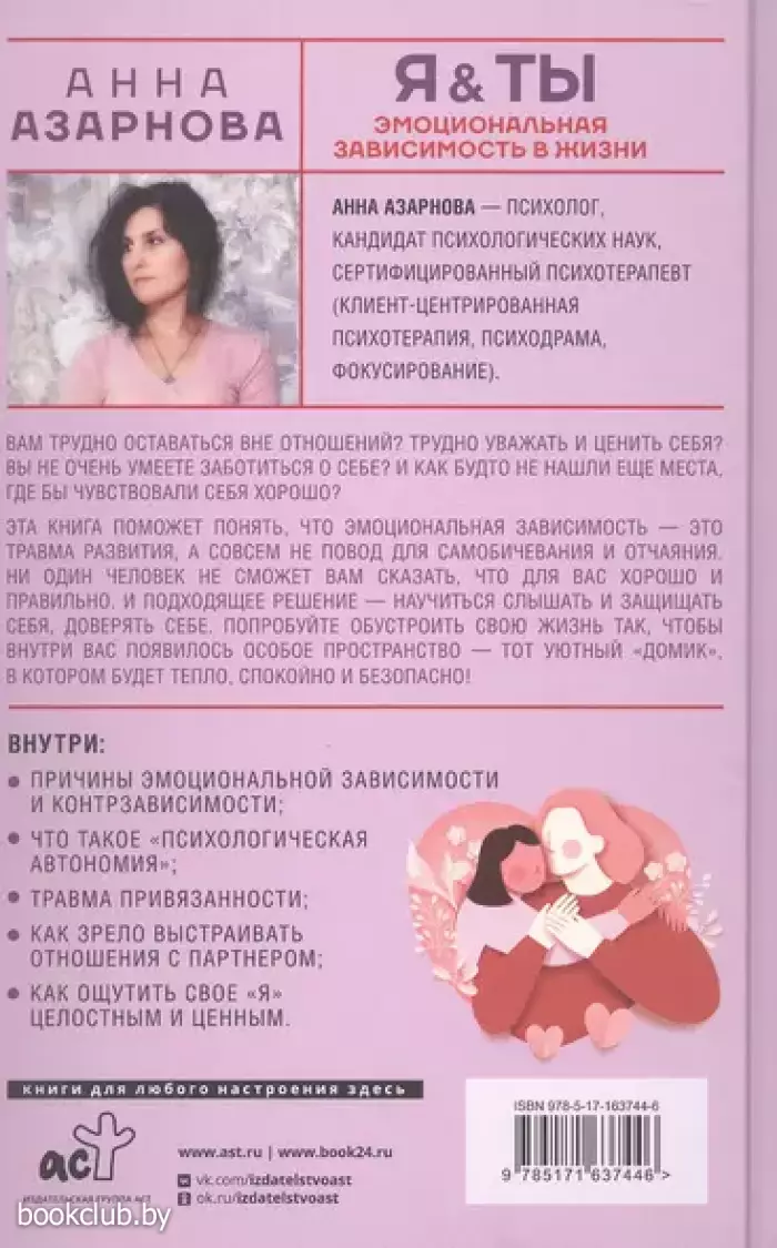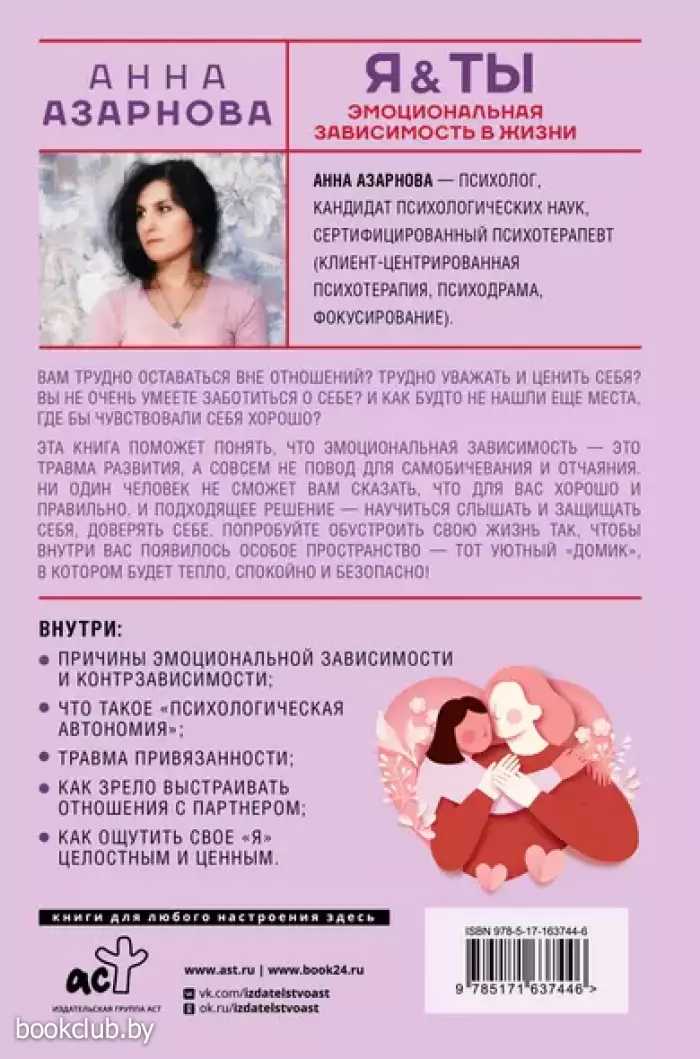 Эта книга поможет понять, что эмоциональная зависимость — это травма развития, а совсем не повод для самобичевания и отчаяния. Ни один человек не сможет вам сказать, что для вас хорошо и правильно. И подходящее решение — научиться слышать и защищать себя, доверять себе. Попробуйте обустроить cвою жизнь так, чтобы внутри вас появилось особое пространство — тот уютный «домик», в котором будет тепло, спокойно и безопасно!