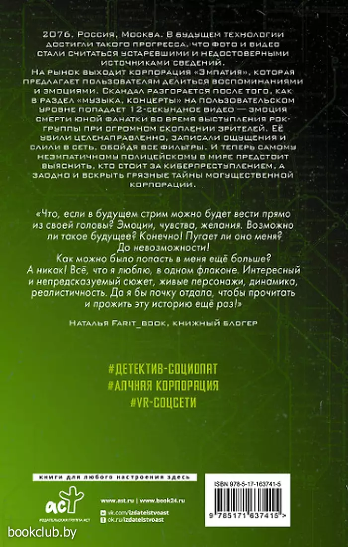 Книга от издательства «АСТ», входящая в серию «Nova Fiction. КиберРеальность. Фантастический триллер», принесет массу положительных впечатлений от прочтения и займет достойное место в вашей библиотеке. Для вашего удобства при оформлении заказа по телефону назовите код товара: 412540