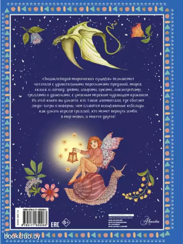 Книга Элеоноры Барсотти «Энциклопедия мифических существ» станет отличным подарком для любителей мифологии и фэнтези. Она расскажет об удивительных персонажах сказок и легенд со всего света: о феях, эльфах, элементалях, троллях, орках и многих других. Вы узнаете, чем виверны отличаются от драконов, кто такие гулоны, где живут полурослики, чем любят заниматься лепреконы и кто может успокоить разбушевавшегося воина-скелета. Каждая страница книги снабжена иллюстрациями, которые помогают представить себе фантастических существ. Для среднего школьного возраста.