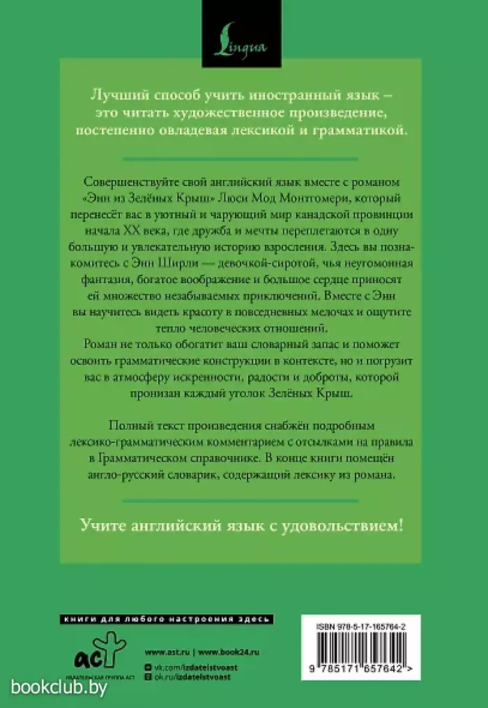 Роман не только обогатит ваш словарный запас и поможет освоить грамматические конструкции в контексте, но и погрузит вас в атмосферу искренности, радости и доброты, которой пронизан каждый уголок Зеленых Мезонинов.