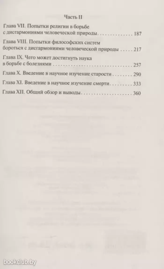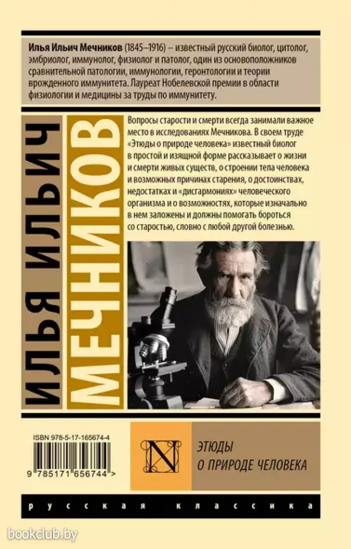 Вопросы старости и смерти всегда занимали важное место в исследованиях Мечникова. В своем труде «Этюды о природе человека» известный биолог в простой и изящной форме рассказывает о жизни и смерти живых существ, о строении тела человека и возможных причинах старения, о достоинствах, недостатках и «дисгармониях» человеческого организма, и о возможностях, которые изначально в нем заложены и должны помогать бороться со старостью, словно с любой другой болезнью.