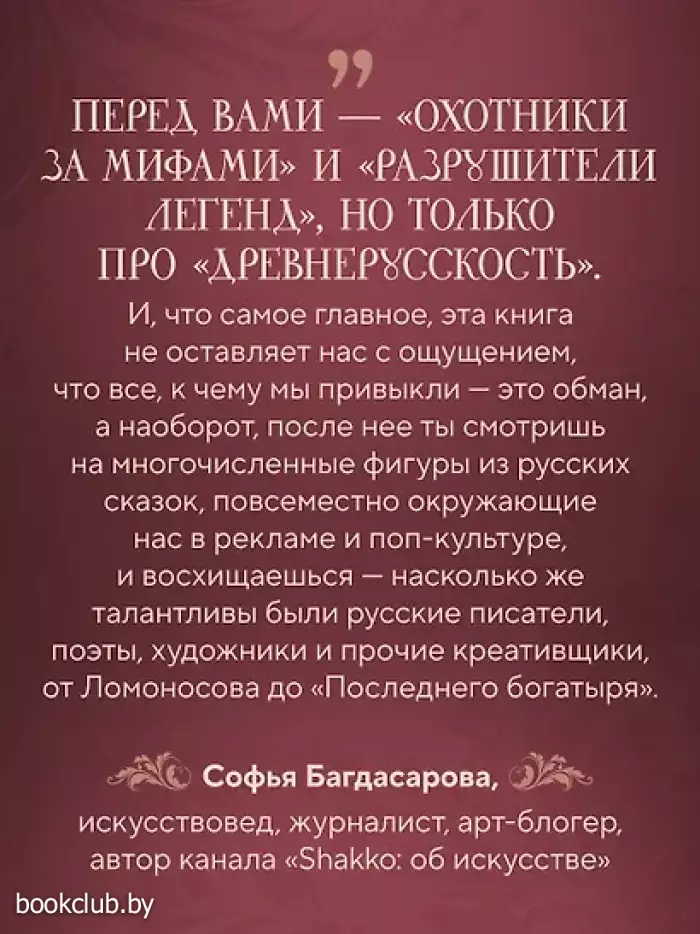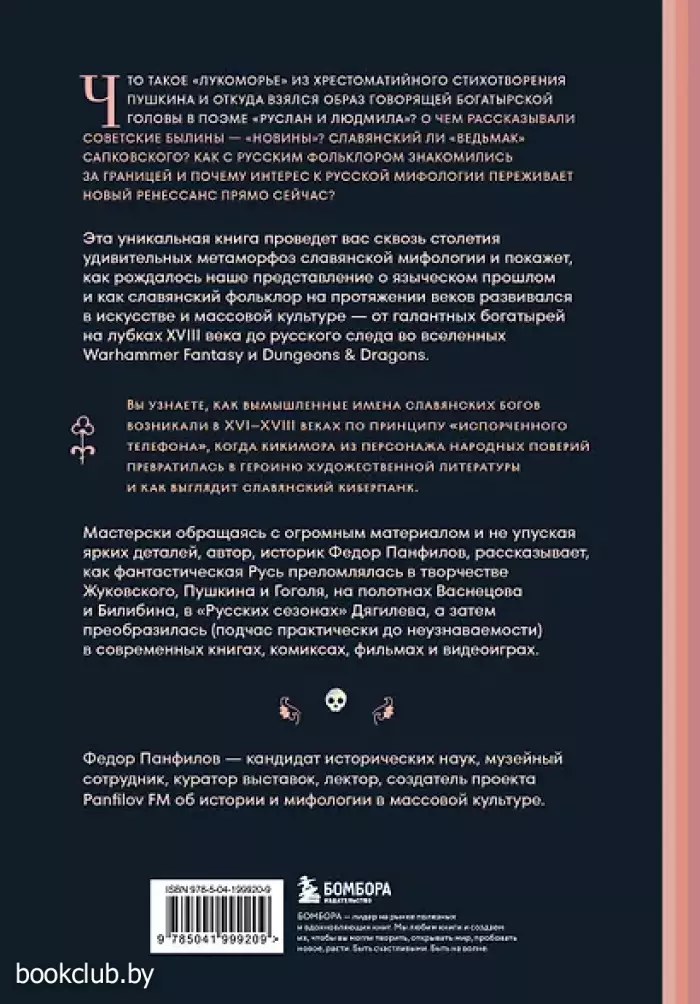 Задумывались ли вы когда-нибудь, как Баба Яга, Кощей Бессмертный и былинные богатыри превратились в героев пушкинских сказок, картин Васнецова, советских киносказок и, наконец, в культовых персонажей игр и комиксов? «Фантастическая Русь» — первое масштабное исследование того, как русская мифология воспринималась в разные эпохи и в каких формах она уже не первый век преломляется в искусстве и массовой культуре — от первых и порой курьезных попыток реконструкции славянского языческого пантеона до современных фэнтезийных интерпретаций Руси в книгах, комиксах, фильмах, настольных и компьютерных играх. Вы узнаете, что читали в XVIII веке вместо славянского фэнтези, почему у царя Салтана и князя Гвидона из пушкинской сказки такие странные неславянские имена, как Баба Яга стала вампиром и основала клан Носферату и как выглядят былины про Ленина и Сталина. Проследите, как поэты и писатели XIX века — Жуковский, Пушкин, Гоголь — превращали персонажей фольклора в знакомых с детства литературных героев, а Васнецов и Билибин создавали визуальный канон сказочной Руси, который до сих пор встроен в наше воображение. Мастерски обращаясь с огромным материалом и не упуская ярких деталей, автор, историк Федор Панфилов, убедительно показывает, что русская мифология вдохновляла и вдохновляет не только классическое искусство от литературы романтизма до Русских сезонов Дягилева, но и популярную массовую культуру, а наше прошлое — неисчерпаемый источник для фантазий о будущем. Эффектное подарочное издание с коллекцией редких иллюстраций адресовано всем, кто любит историю, мифологию, искусство, поп-культуру и хочет понять, как мифы продолжают формировать наш культурный код. Это долгожданный must-read для фанатов и авторов фэнтези, художников-иллюстраторов, геймеров и геймдизайнеров, исследователей и создателей авторских вселенных. Федор Панфилов — кандидат исторических наук, музейный сотрудник, куратор выставок, лектор, создатель проекта Panfilov FM об истории и мифологии в массовой культуре. Книга «Фантастическая Русь. От кикимор романтизма до славянского киберпанка. Славянские мифы и фольклор в искусстве и масскульте XVIII–XXI веков» не только принесёт множество приятных эмоций, но и может послужить замечательным подарком для ваших близких. Для вашего удобства при оформлении заказа по телефону назовите код товара: 416984
