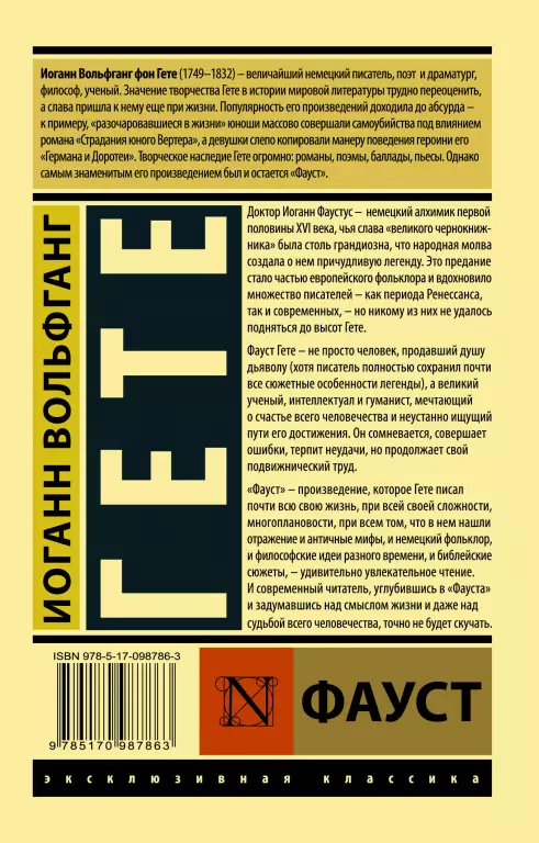 «Фауст» — произведение, которое Гете писал почти всю жизнь, при всей своей сложности, многоплановости, при всем том, что в нем нашли отражение и античные мифы, и немецкий фольклор, и философские идеи разного времени, и библейские сюжеты, — удивительно увлекательное чтение. И современный читатель, углубившись в Фауста и задумавшись над смыслом жизни и даже над судьбой всего человечества, точно не будет скучать.