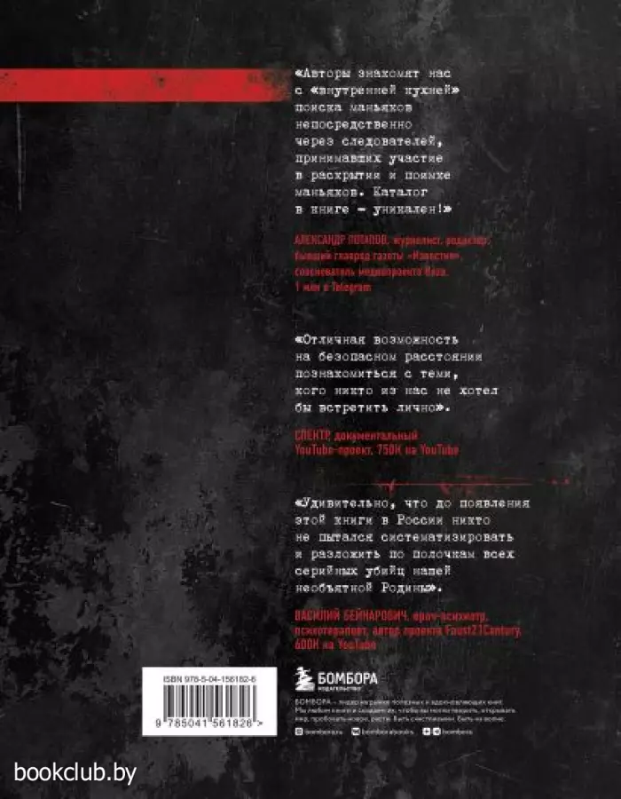 А еще в конце книги вы найдете картотеку из 350 имен серийных убийц и банд неонацистов, которые наводили ужас и панику на протяжении многих столетий.