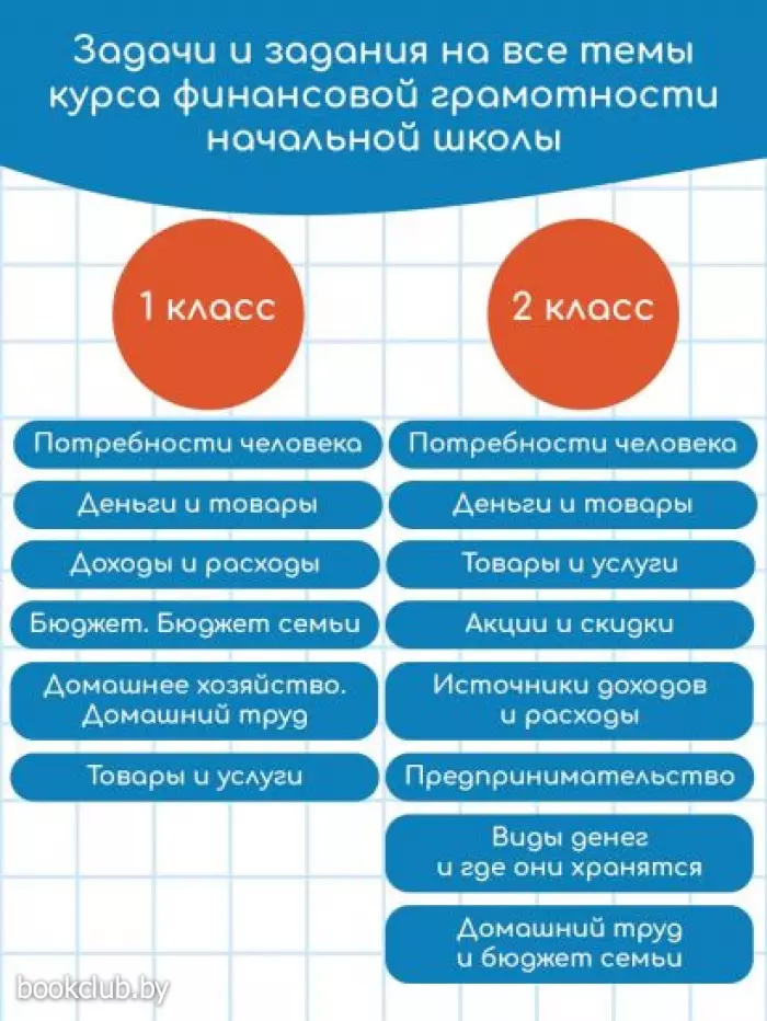 В пособии собраны задачи и задания на разные темы курса финансовой грамотности в начальной школе. В занимательной форме ребёнок освоит такие понятия, как деньги, банки и банковские операции, потребности человека, бюджет семьи, товары и торговля, труд и оплата труда, социальные выплаты, предпринимательство, конкуренция, маркетинг, реклама, производство, инвестиции и другие.