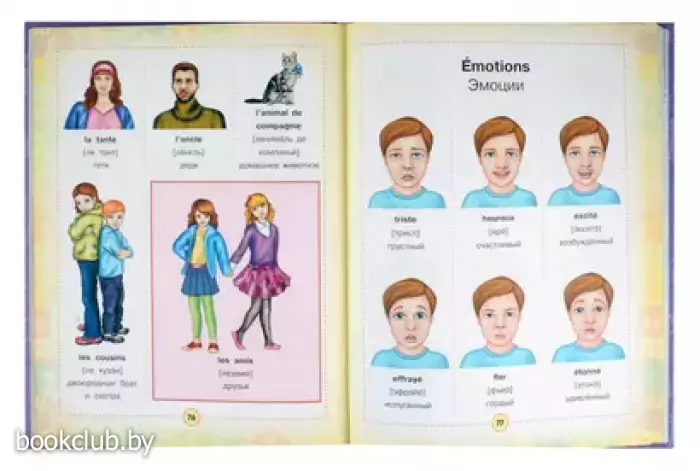 В книге содержится около 1000 цветных иллюстраций, благодаря которым ребёнок будет легче усваивать материал. Психологи давно заметили, что современные дети лучше воспринимают информацию через визуальные образы. Красочные иллюстрации способствуют включению у ребенка ассоциативного запоминания. Благодаря этому дети будут овладевать новой французской лексикой увлечённо и легко, воспринимая это больше как игру, нежели как учебу.