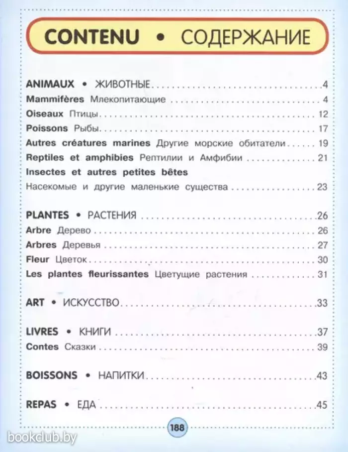 Настоящий словарь содержит более 1200 французских слов с переводом и транскрипцией русскими буквами. Слова сгруппированы по темам: Животные, Растения, Люди, Искусство, Книги, Спорт, Транспорт и т.п. Таким образом, представленная лексика охватывает практически все сферы деятельности человека, а также основные понятия, относящиеся к окружающему миру.