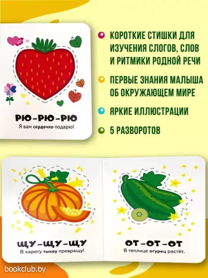 Увлекательные книжки для развития речи с яркими иллюстрациями. Коротки стишки помогают малышу быстро учить слова, формировать ритмику родной речи и не перегружают восприятие.