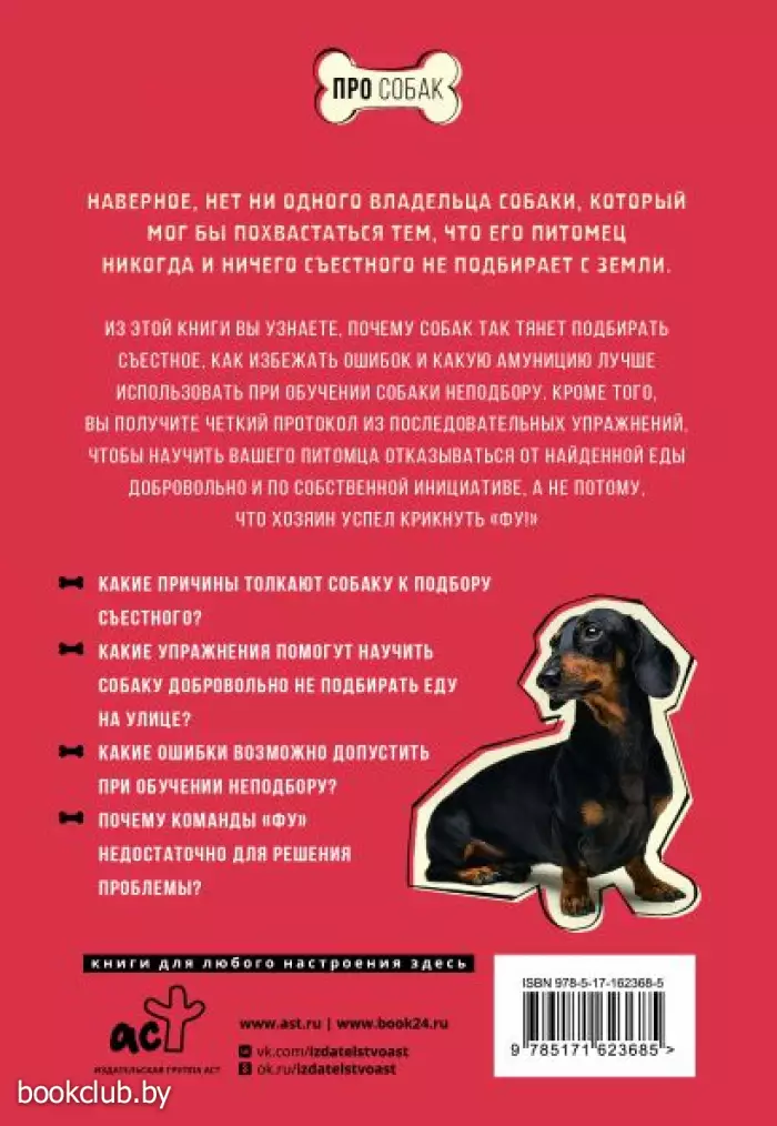 Из этой книги вы не только узнаете, почему собак так тянет подбирать съестное, — она также даст вам четкий протокол из последовательных упражнений, освоив которые, вы научите вашего питомца отказываться от найденной еды добровольно и по собственной инициативе, а не потому, что хозяин успел крикнуть "Фу!"