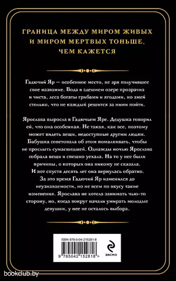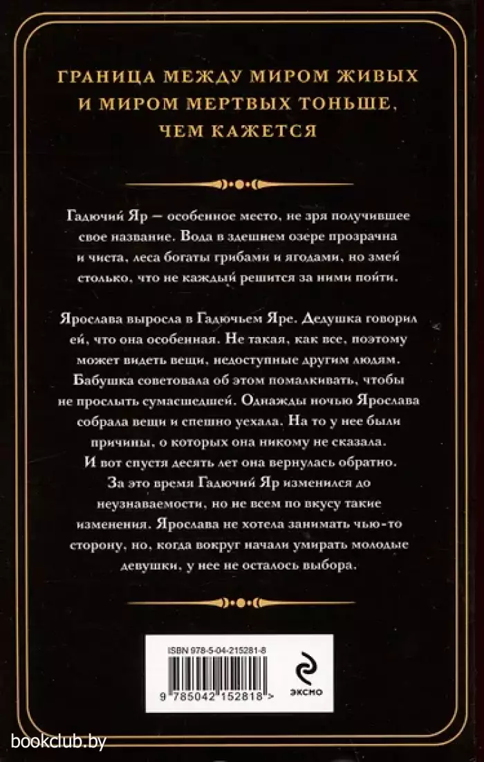 Ярослава выросла в Гадючьем Яре. Дедушка говорил ей, что она особенная. Не такая, как все, поэтому может видеть вещи, недоступные другим людям. Бабушка советовала об этом помалкивать, чтобы не прослыть сумасшедшей. Однажды ночью Ярослава собрала вещи и спешно уехала. На то у нее были причины, о которых она никому не сказала. И вот спустя десять лет она вернулась обратно. За это время Гадючий Яр изменился до неузнаваемости, но не всем по вкусу такие изменения. Ярослава не хотела занимать чью-то сторону, но когда вокруг начали умирать молодые девушки, у нее не осталось выбора.