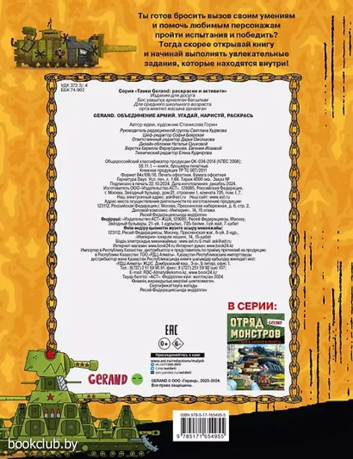 Книги издательства «АСТ» из серии «Танки Gerand: раскраски и активити» станут прекрасным дополнением вашей библиотеки. Для вашего удобства при оформлении заказа по телефону назовите код товара: 413649