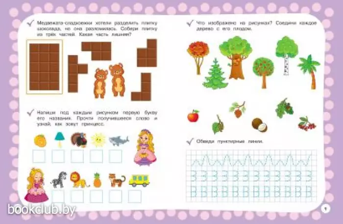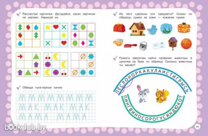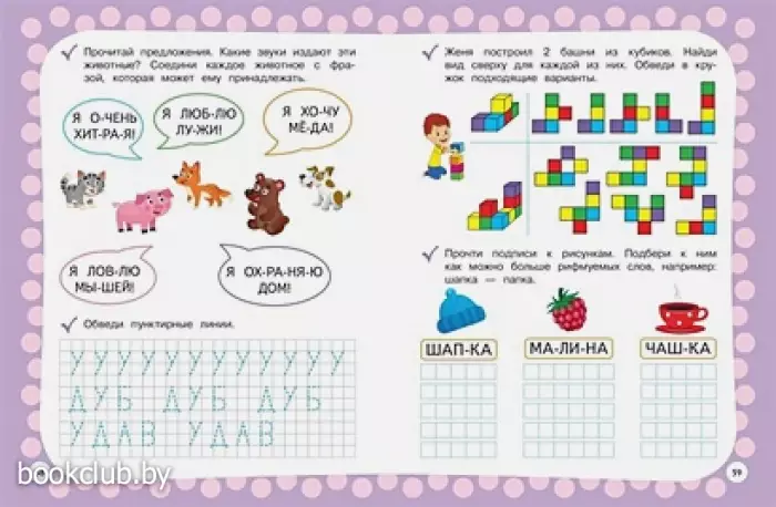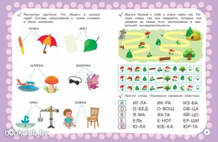 Выполняя доступные игровые задания вместе с взрослым и тратя на это минимальное количество времени, ребенок потренирует навык слогового чтения; познакомится с составом числа и сможет решить примеры на сложение и вычитание; будет обводить по пунктиру цифры, буквы, слова, узоры, проходить лабиринты; разовьёт внимание, память, речь, мышление, графические навыки. Яркие красочные иллюстрации принесут ребенку позитивные эмоции и возможность воспринимать обучение как игру. Занимаясь, он не только интересно и с пользой проведет время, но и получит необходимый для его возраста объем знаний, умений и навыков.