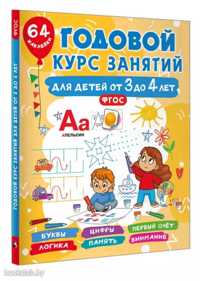 Годовой курс занятий для детей от 3 до 4 лет. 64 наклейки