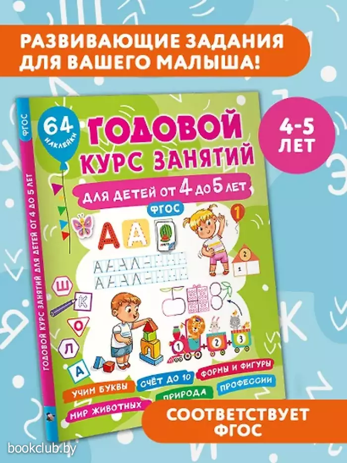 Годовой курс занятий для детей от 4 до 5 лет. 64 наклейки
