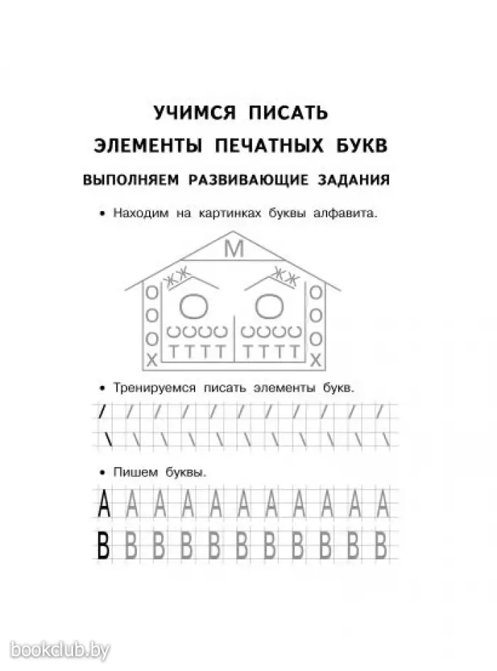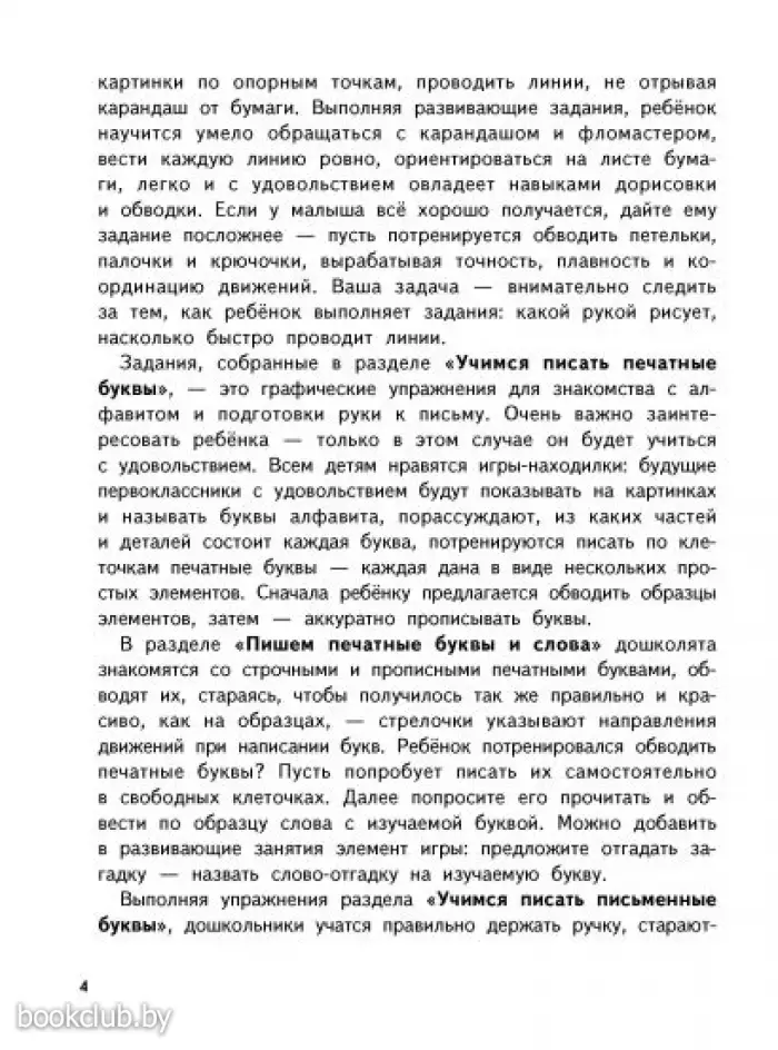 Будущий первоклассник учится ориентироваться на листе бумаги, старается писать палочки и крючочки в размер рабочей строки и на равном расстоянии друг от друга, знакомится с алфавитом, обводит и пишет печатные и письменные буквы по образцу.