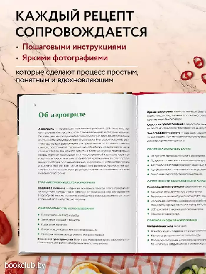 Аэрогриль — это не просто модный гаджет, а настоящий универсальный помощник на кухне. С его помощью можно жарить, тушить, запекать и даже готовить ароматную выпечку. Если вам кажется, что разобраться с ним сложно — не переживайте! Этот сборник объяснит все тонкости работы с аэрогрилем и вдохновит вас на кулинарные эксперименты. Более 40 рецептов — от сытных, аппетитных завтраков до нежных десертов и хрустящей выпечки — помогут вам раскрыть все возможности этой чудо-техники. А пошаговые инструкции и красочные фотографии сделают процесс готовки простым, понятным и увлекательным.