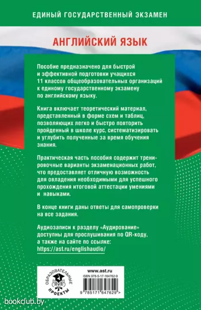 Пособие предназначено для быстрой и эффективной подготовки учащихся 11 классов общеобразовательных организаций к единому государственному экзамену по английскому языку. Книга включает теоретический материал, представленный в форме схем и таблиц, позволяющих легко и быстро повторить пройденный в школе курс, систематизировать и углубить полученные за время обучения знания. Практическая часть пособия содержит тренировочные варианты экзаменационных работ, что предоставляет отличную возможность для овладения необходимыми для успешного прохождения итоговой аттестации умениями и навыками. В конце книги даны ответы для самопроверки на все задания.