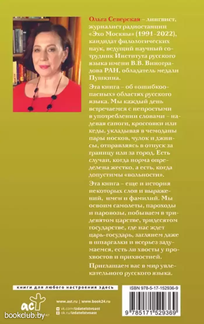 Книги издательства «АСТ» из серии «Говорим по-русски правильно» станут прекрасным дополнением вашей библиотеки. Для вашего удобства при оформлении заказа по телефону назовите код товара: 410107