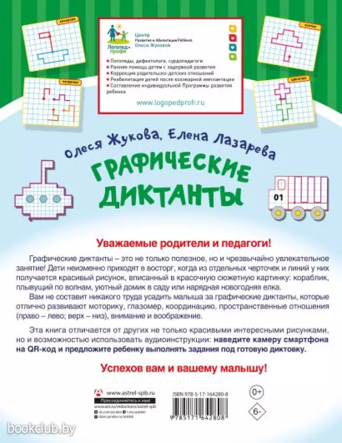 Каждое задание в книге снабжено аудиоинструкцией. Для того чтобы воспользоваться ею, наведите камеру смартфона на QR-код. Так ребенок сможет выполнять задания самостоятельно под диктовку.